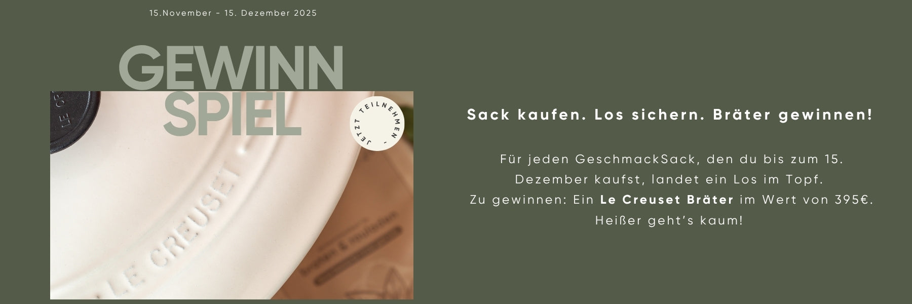 Aufgrund des aktuell hohen Bestellaufkommens kann der Versand 1–2 Wochen dauern. Wir geben natürlich alles, damit dein GeschmackSack so schnell wie möglich bei dir ist!